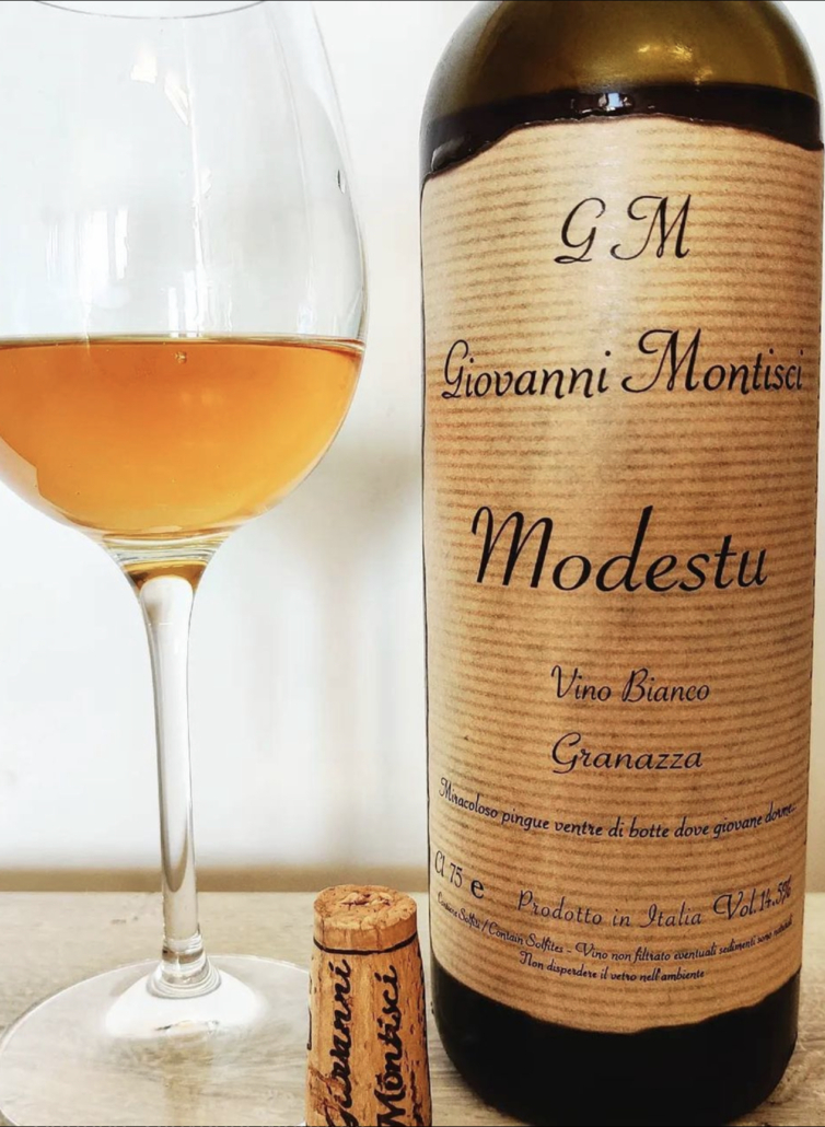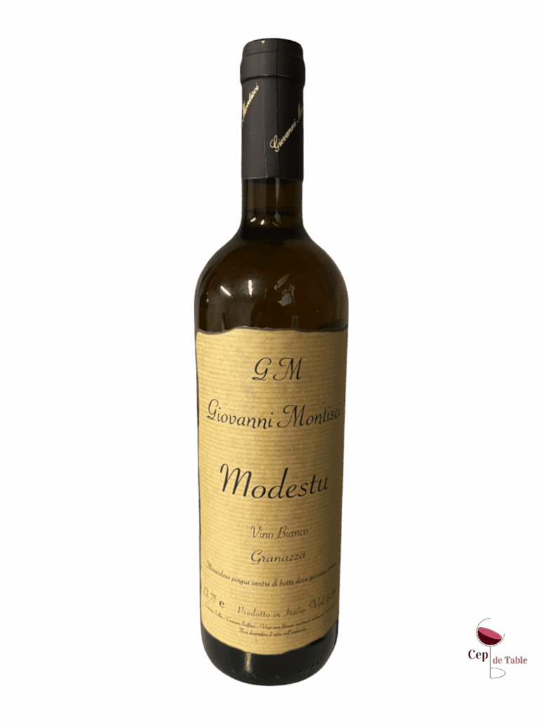 Des vignes centenaires qui appartenaient au parrain de Giovanni, Modestu est élevé huit mois en barriques de plusieurs vins. Il possède une belle couleur orangée qui accompagne un nez d’abricot bien mûr. La bouche est tendue et longue, quelques fins tannins donnent une vraie densité à ce vin étonnant.