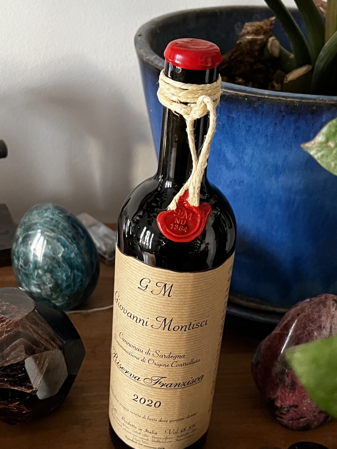 La Cantina Giovanni Montisci est sarde, dans la région de Mamoiada, réputée comme étant la région des plus beaux grenache (Cannonau en local). Je l’ai découverte sur les recommandation d’une amie italienne qui travaille dans le même tonnellerie que moi. Cette réserve est assez incroyable (reserva veut dire deux années d’élevage minimum), et porte le nom de l’épouse de Giovanni.