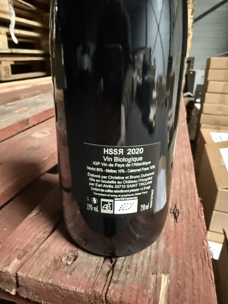Ce cinquième millésime est toujours sans sulfite ajouté (une pincée néanmoins à la mise pour éviter les surprises), toujours à base majoritaire de Merlot, et toujours en IGP Vin de pays de l’Atlantique même s’il pourrait avoir l’appellation Côtes de Bourg.