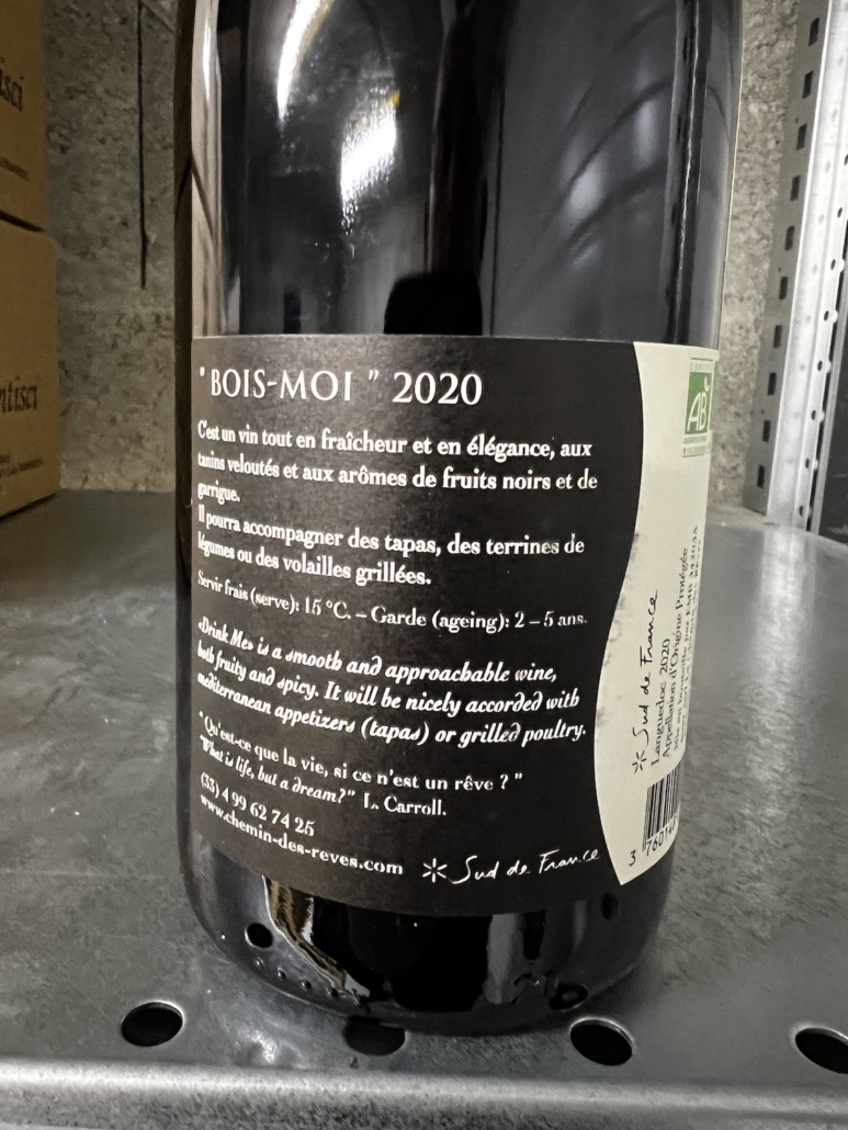 J’ai choisis « Bois-moi » du Chemin des rêves car je cherchais à vous proposer une cuvée facile à voir tout en étant capable de tenir quelques années de cave.