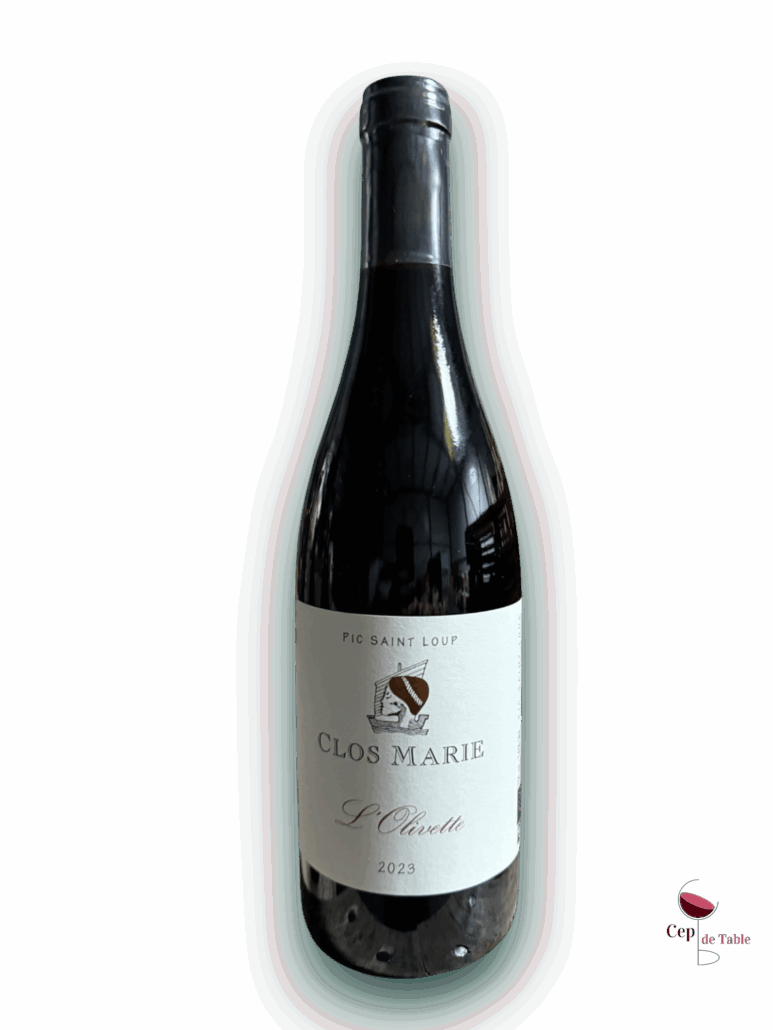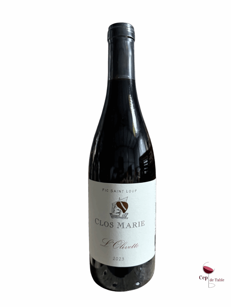 Ce Pic Saint Loup Clos Marie Olivette est issu de vignes plantées sur des anciennes oliveraies. Ces vignes donnent naissance à un vin qui évolue de manière étonnante vers des arômes d’olive noire, de tapenade et de garrigue. C’est un vin fin et tendre construit sur l’équilibre, au nez de fruits noirs avec des notes épicées et réglissées, des tannins fermes en bouche et une belle générosité. Un vin à boire sur sa jeunesse tout en étant capable de vieillir une bonne dizaine d’années sans souci.