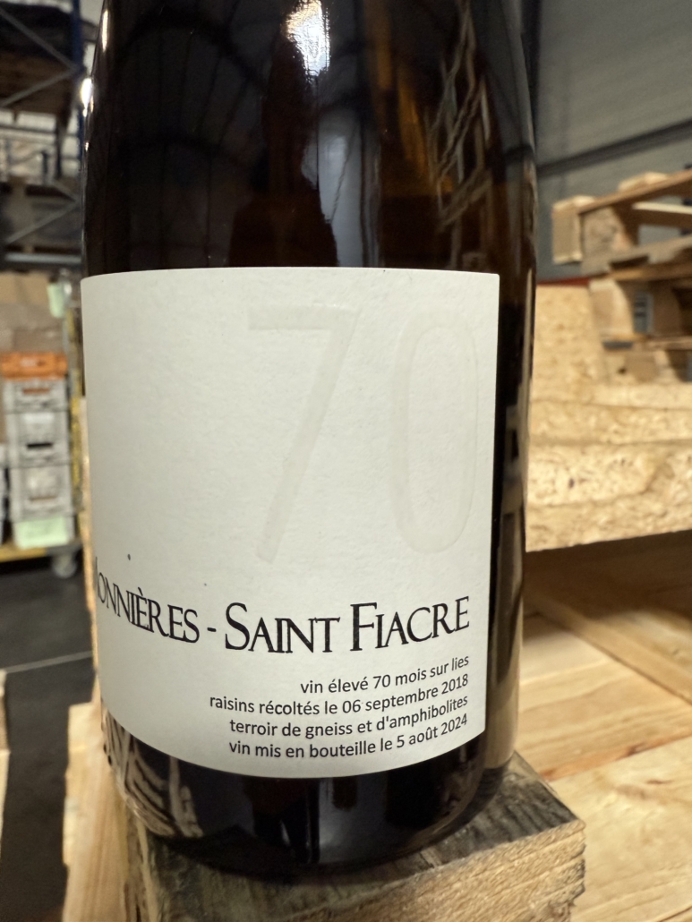 Comme une cuve goûtait merveilleusement bien Sébastien a poussé l’élevage pendant 70 mois (presque 6 ans). La vendange a eu lieu le 6 septembre 2018 et le vin a été mis en bouteille le 5 août 2024 ! Depuis il se repose.