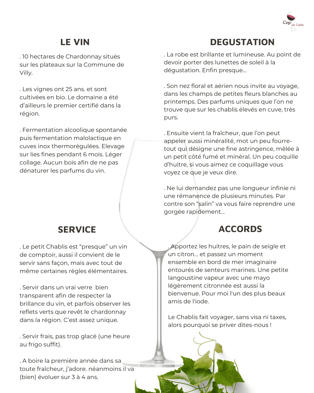 Voici le nouveau millésime d’un « petit » Chablis très digeste, de la droiture, du raisin, de la minéralité et du fruit. Beaucoup de Chablis pas « Petit » aimeraient avoir une telle ampleur.