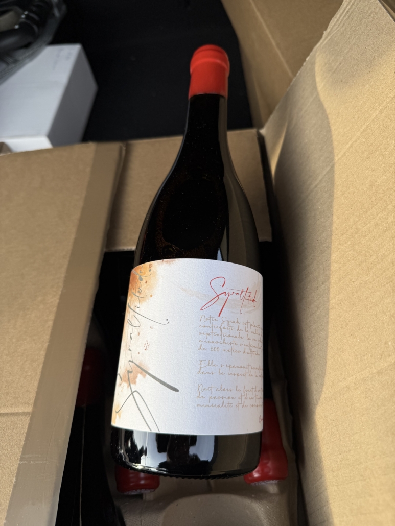 300l de pure syrah, 100% égrapée à la main et élevée dans une barrique neuve d’Atelier Centre France chauffée très doucement. Le résultat est à la hauteur de l’ambition sur ce joli millésime. Du fruit, les épices caractéristiques de la syrah rhodanienne, de l’amplitude et de la rondeur en bouche.