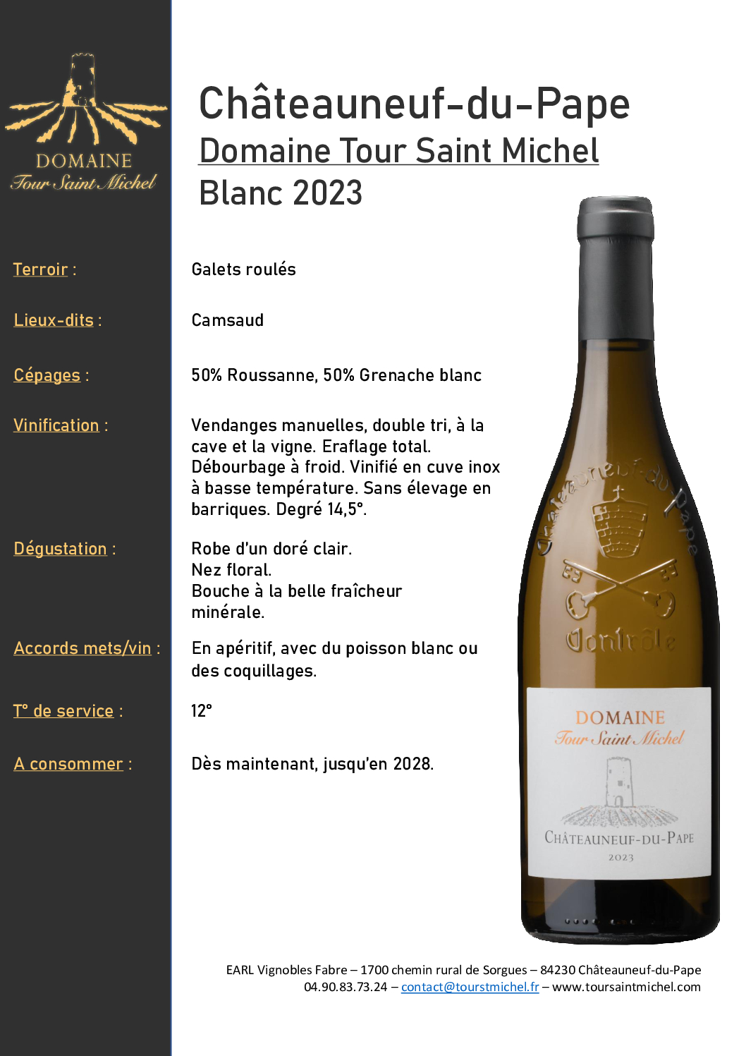 Tour Saint Michel Châteauneuf du Pape blanc 2024